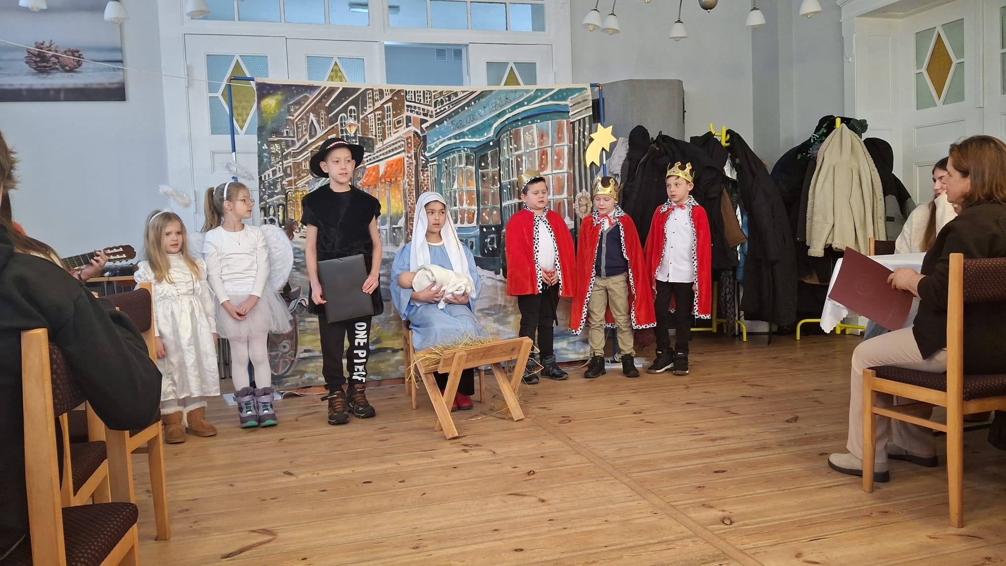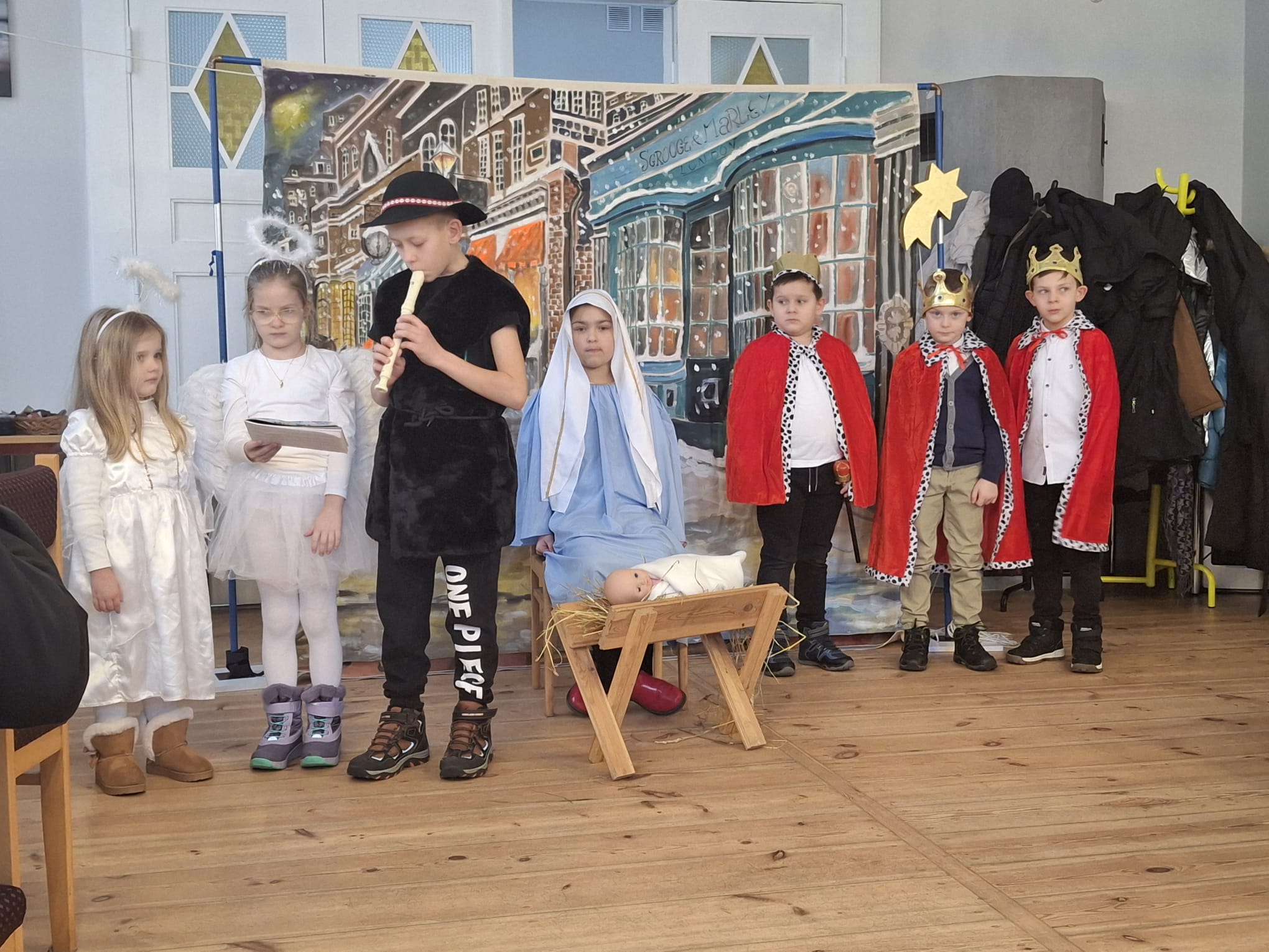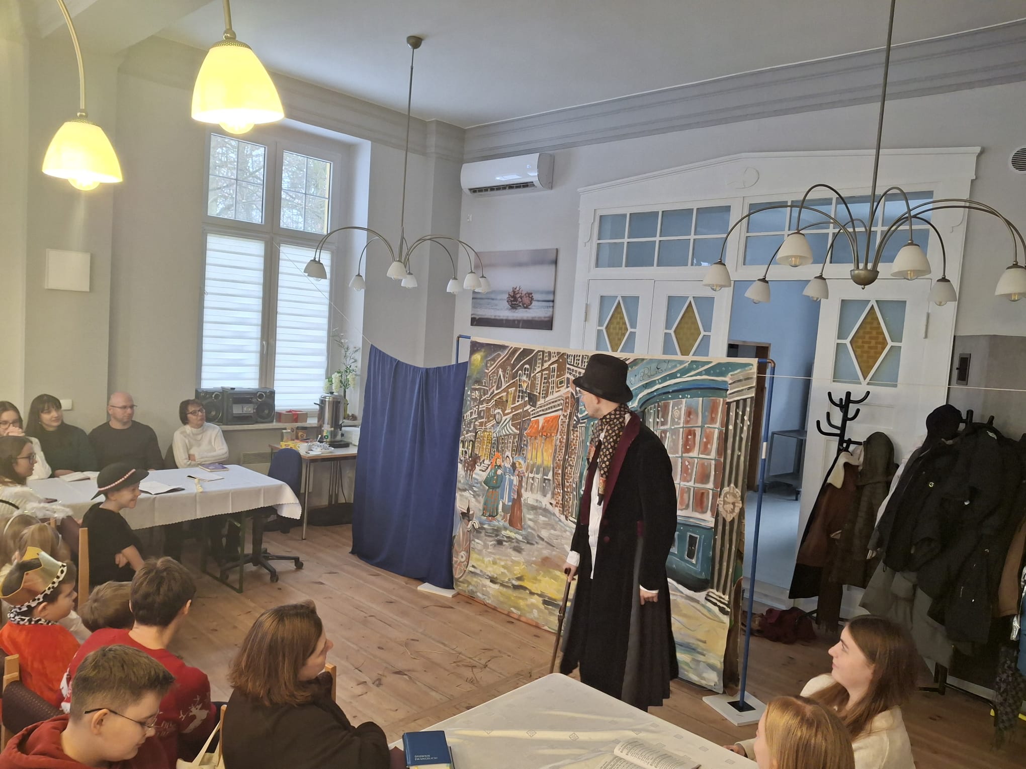 Dwa dni później w Święto Epifanii 6 stycznia br. dzieci miały swoją gwiazdkę, podobnie jak dni kilka temu myło dużo śpiewu, radości, słodkości i prezentów. Spotkanie uatrakcyjnił spektakl dla młodszych i starszych w wykonaniu Teatru Eden z Wieliczki, który przedstawił metodą interaktywną historię Opowieść Wigilijną.
