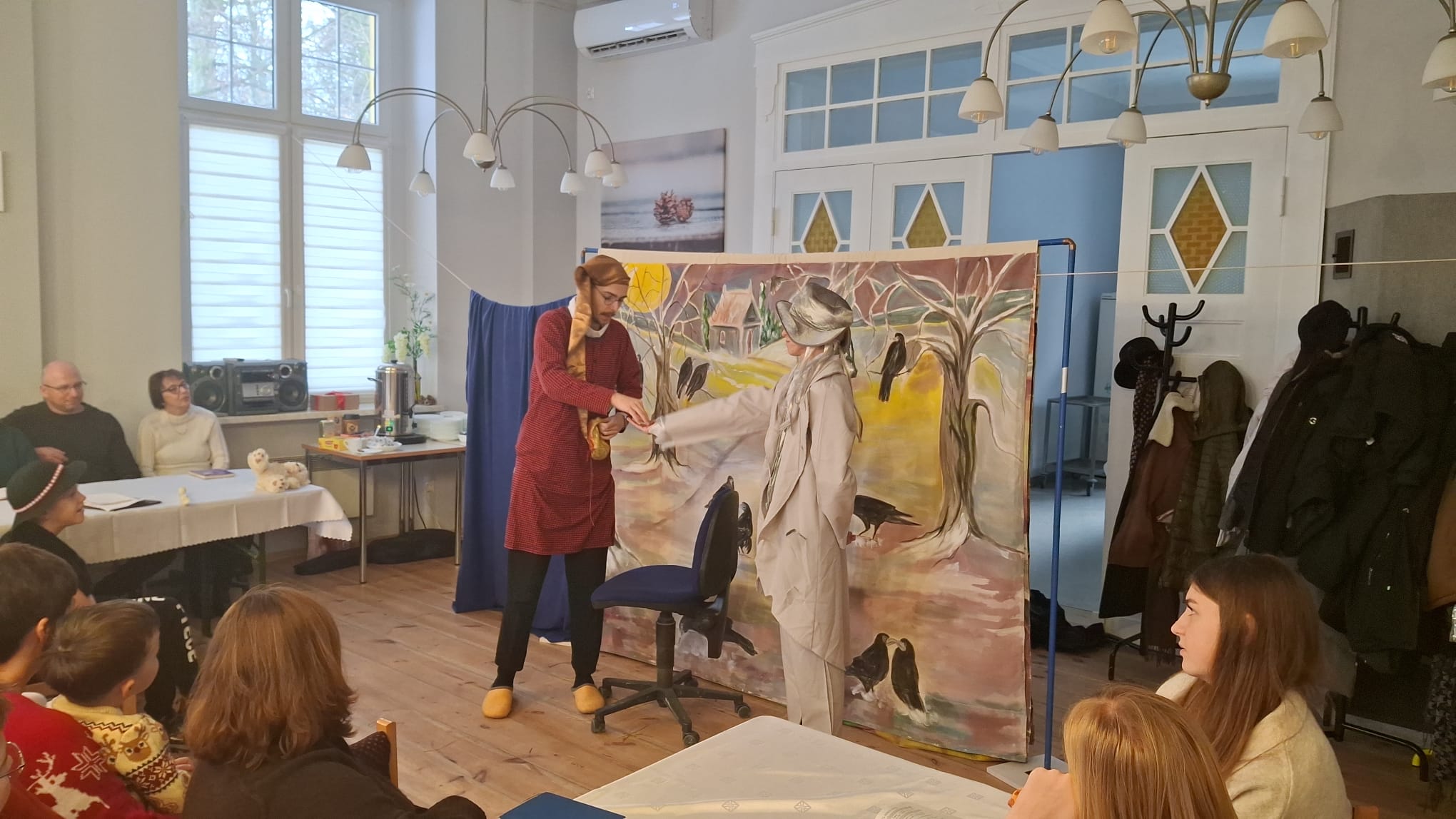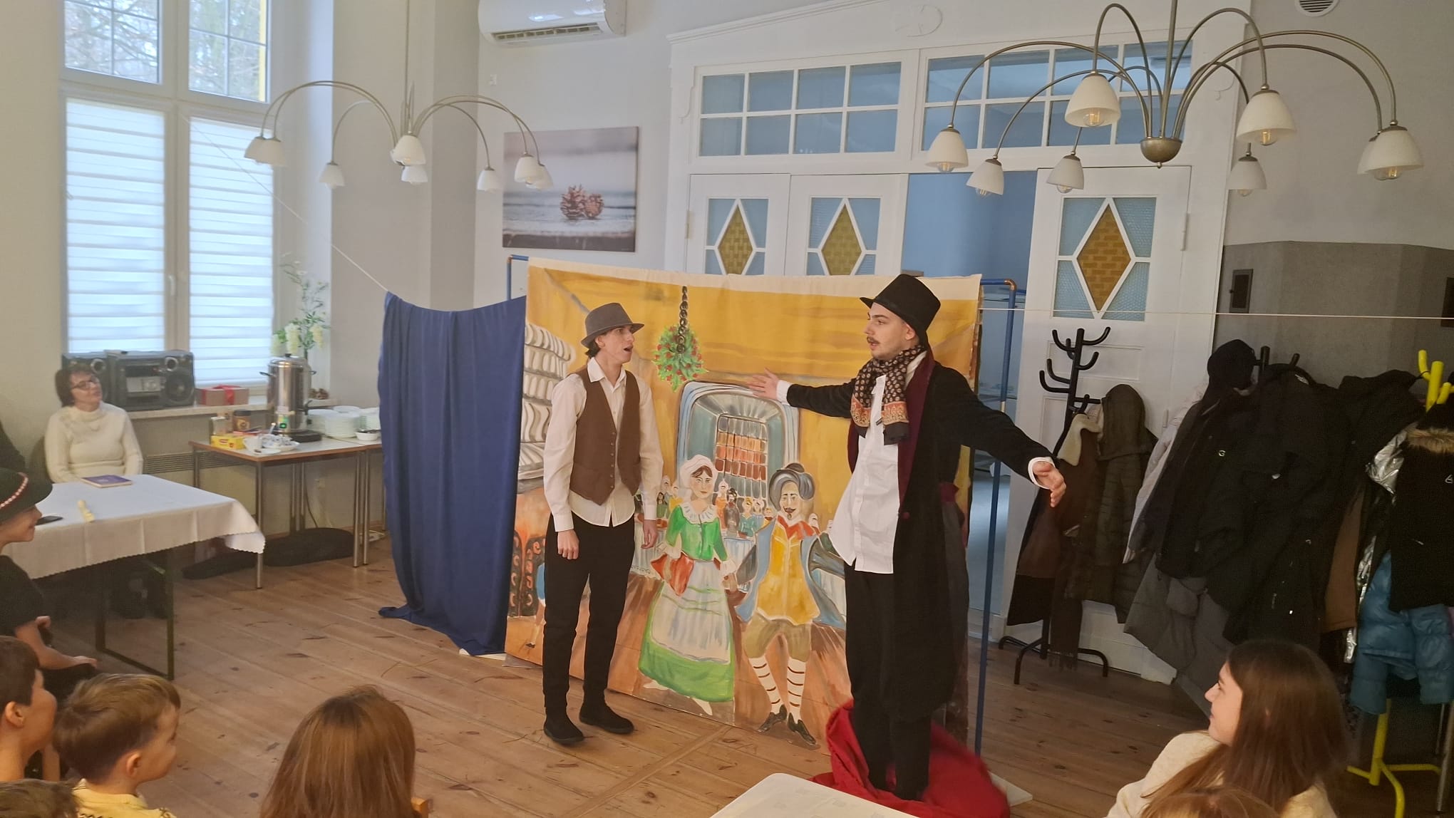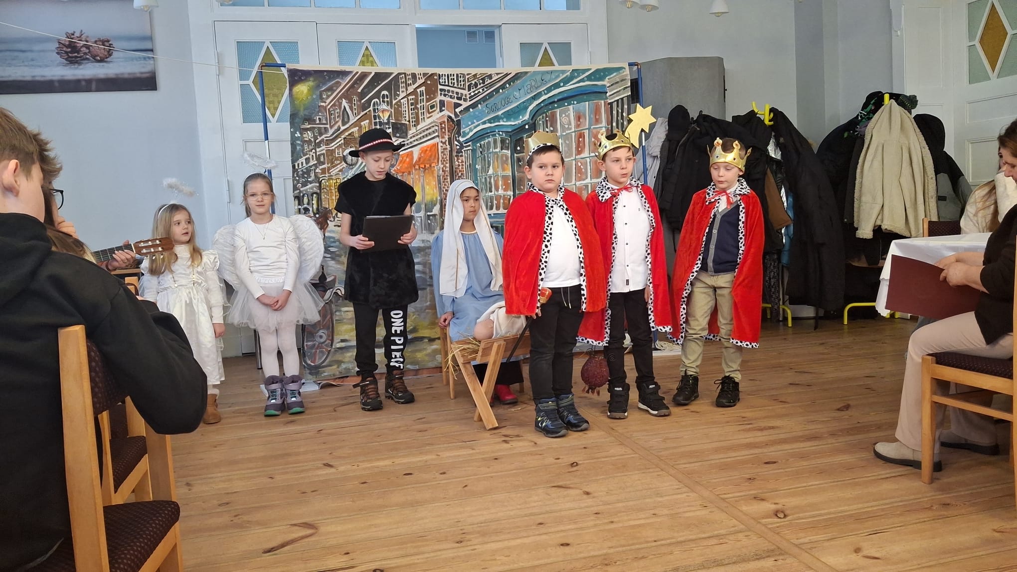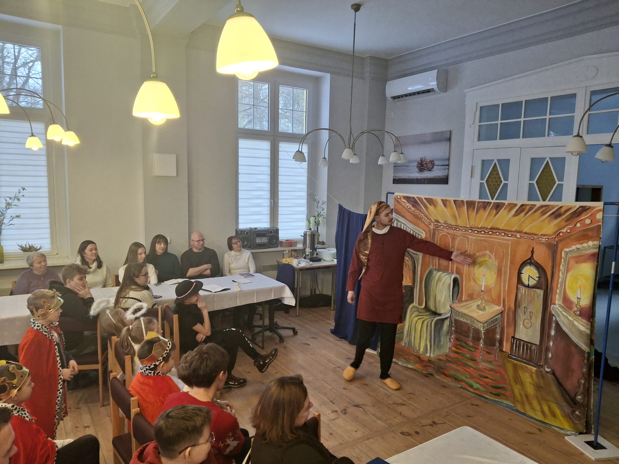 Dwa dni później w Święto Epifanii 6 stycznia br. dzieci miały swoją gwiazdkę, podobnie jak dni kilka temu myło dużo śpiewu, radości, słodkości i prezentów. Spotkanie uatrakcyjnił spektakl dla młodszych i starszych w wykonaniu Teatru Eden z Wieliczki, który przedstawił metodą interaktywną historię Opowieść Wigilijną.